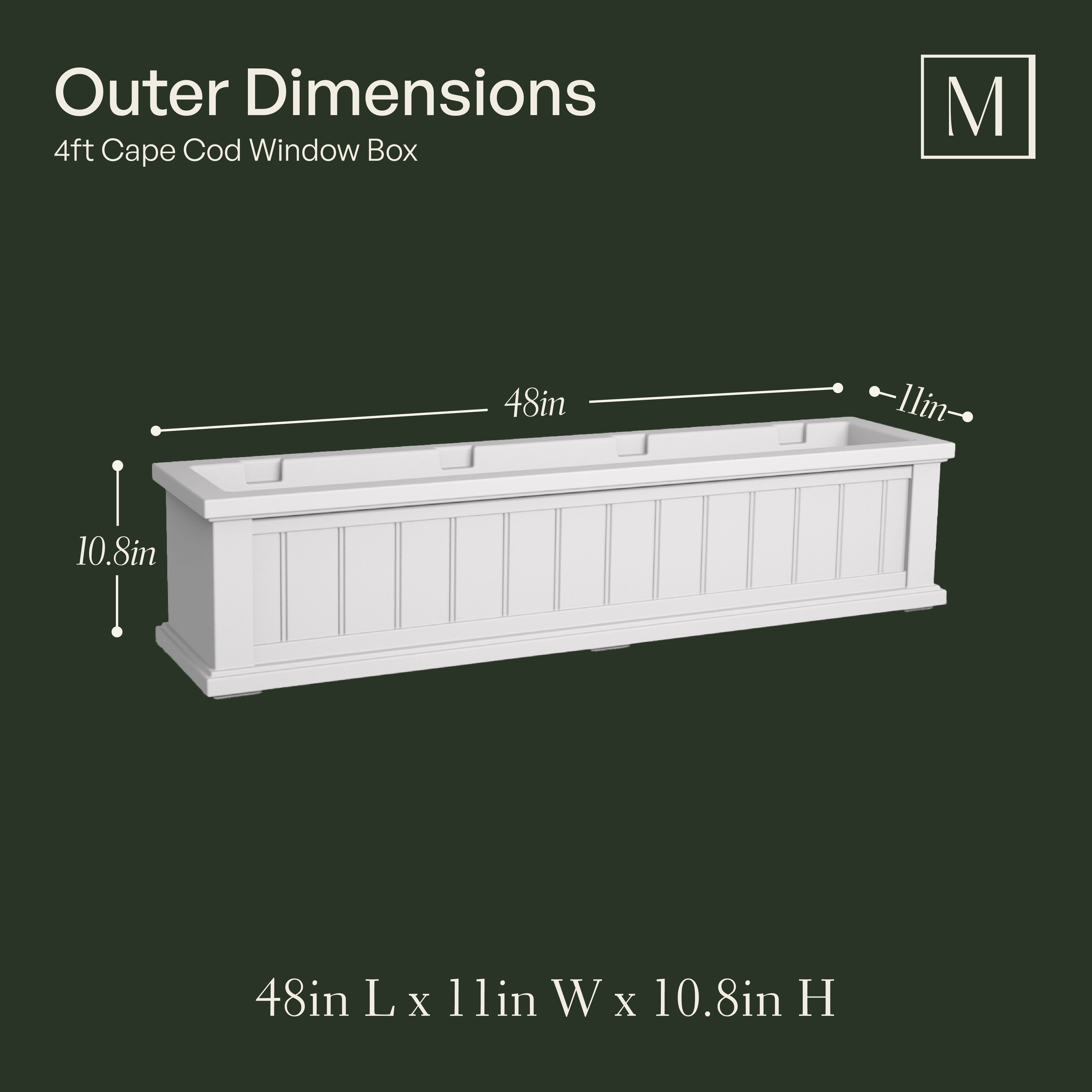 - Outer Dimensions: 48in L x 11in W x 11in H
