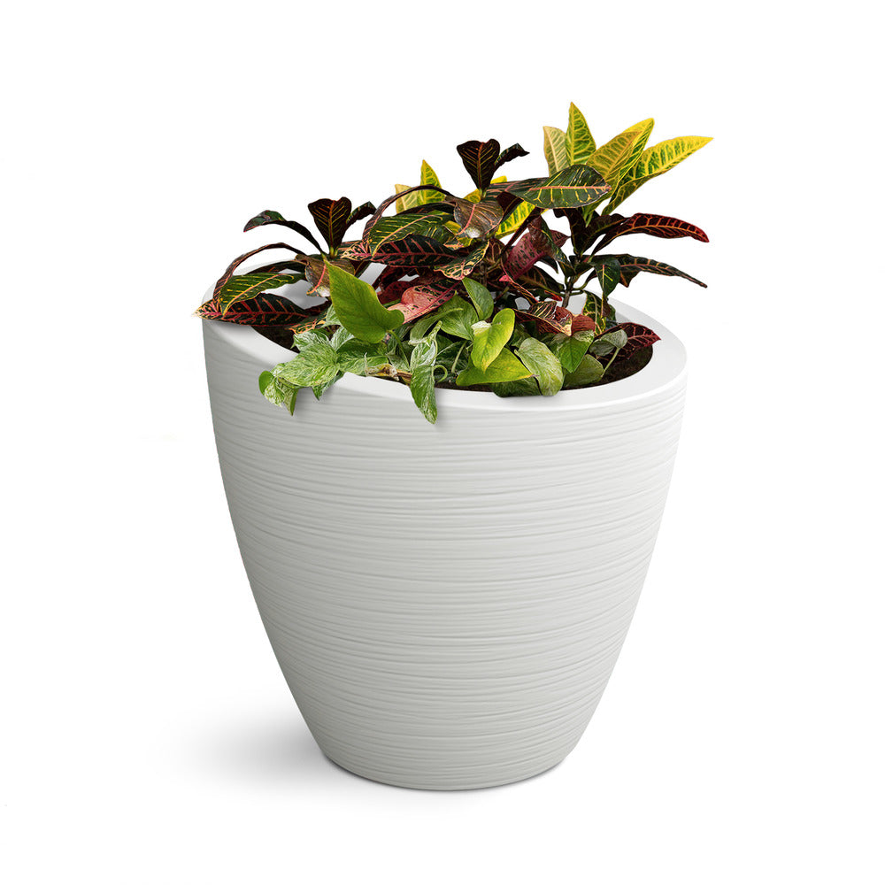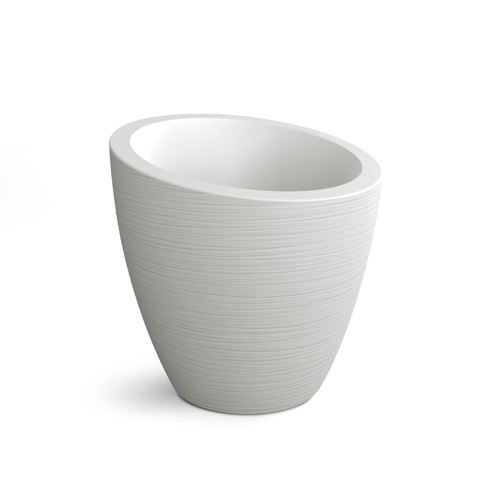 Inspired by modern design, the Modesto collection features a gently tapered silhouette that complements any environment, from urban patios to garden retreats. Its subtle textured finish adds depth and character, enhancing its sophisticated appeal. The angled opening creates a dynamic visual element, making plants stand out in a unique and captivating way.